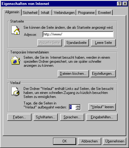 Internetoptionen