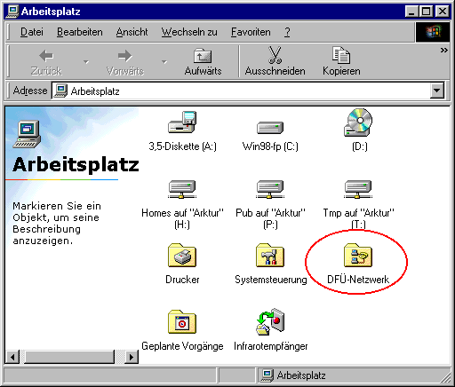Wählen Sie das Symbol "DFÜ-Netzwerk" aus. Dann kommen Sie in das folgende Fenster: