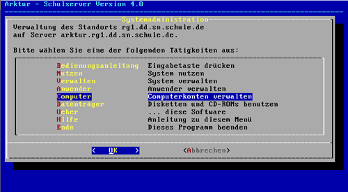 Melden Sie sich am Arktur-Schulserver als sysadm an und wählen den Punkt "Computerkonten verwalten" aus.