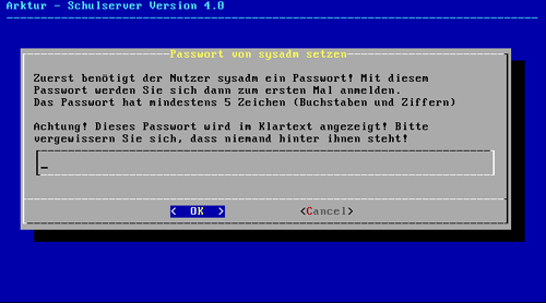 Zuerst geben Sie dem Nutzer sysadm ein Passwort.